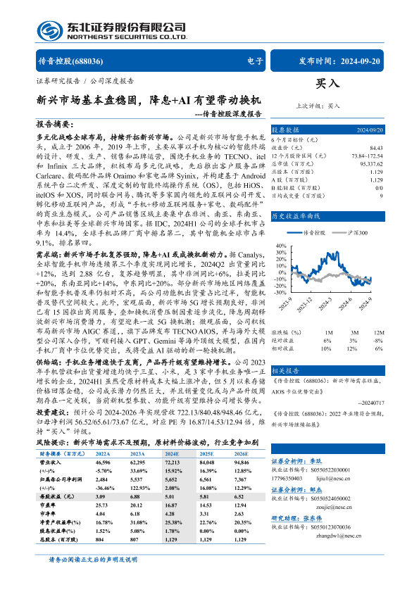 【东北证券】【20240920】传音控股(688036)深度报告:新兴市场基本盘稳固,降息+AI+有望带动换机-37页