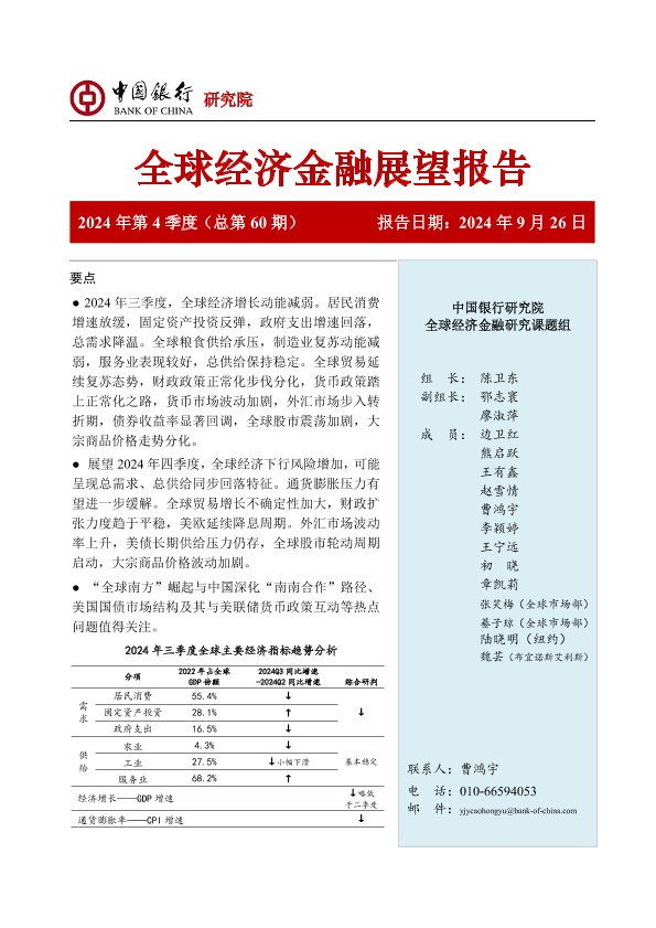 【中国银行研究院】【20240926】全球经济金融展望报告(2024年第4季度)-61页