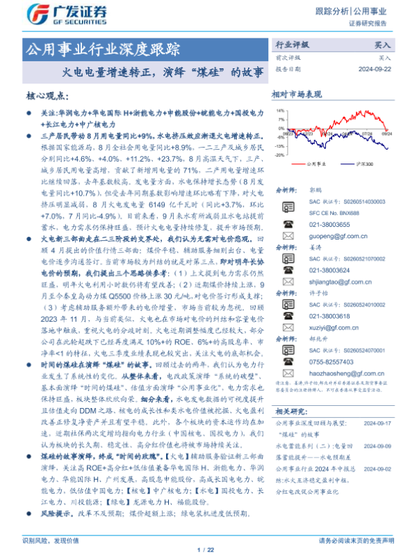 【广发证券】【20240922】公用事业行业深度跟踪:火电电量增速转正,演绎“煤硅”的故事-22页