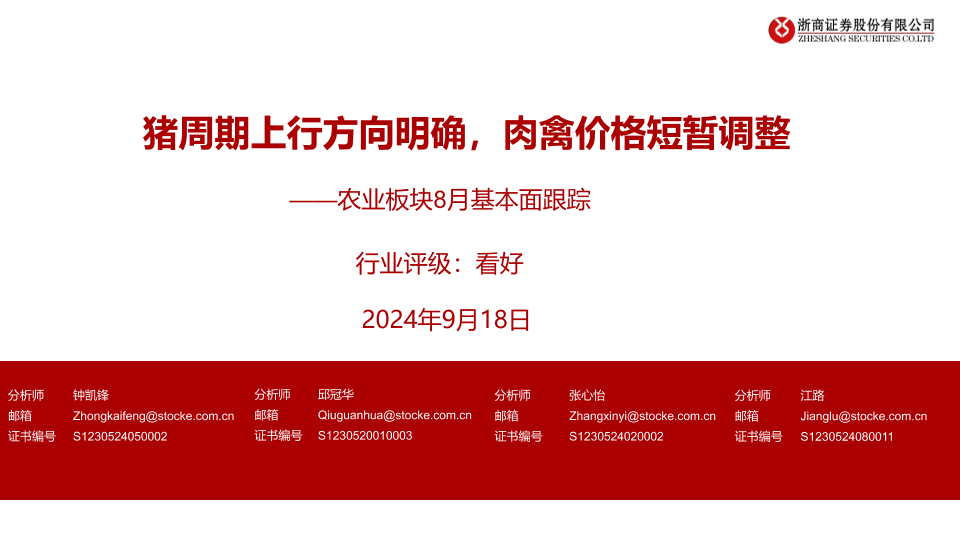 【浙商证券】【20240918】农林牧渔行业农业板块8月基本面跟踪:猪周期上行方向明确,肉禽价格短暂调整-24页