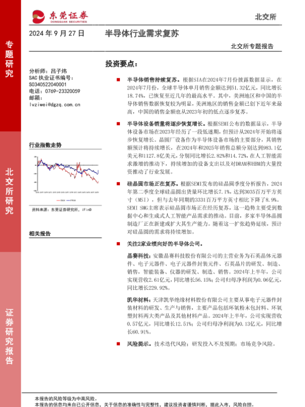 东莞证券 北交所 半导体 市场分析 需求复苏