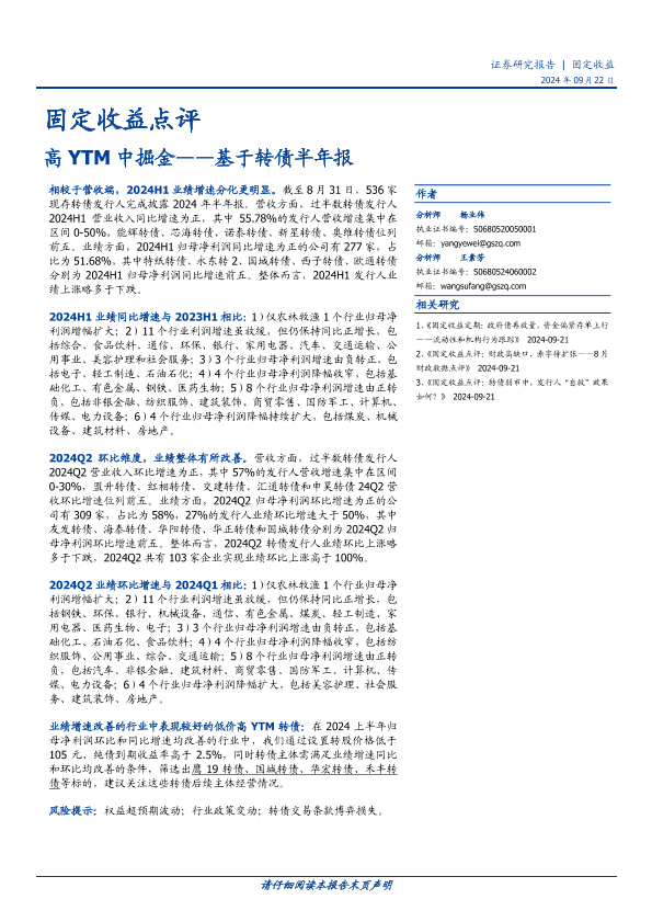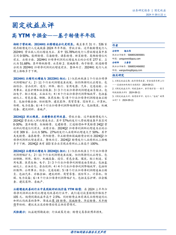【国盛证券】【20240922】固定收益点评-基于转债半年报:高YTM中掘金-10页
