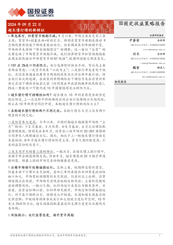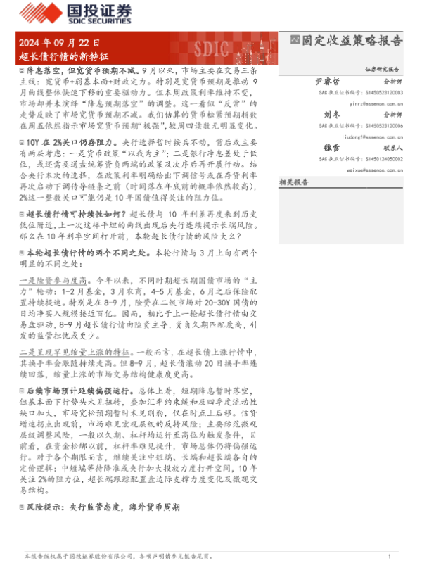 【国投证券】【20240922】固定收益策略报告:超长债行情的新特征-10页