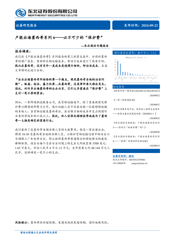 【东北证券】【20240922】产能出海墨西哥系列6:必不可少的“保护费”-12页