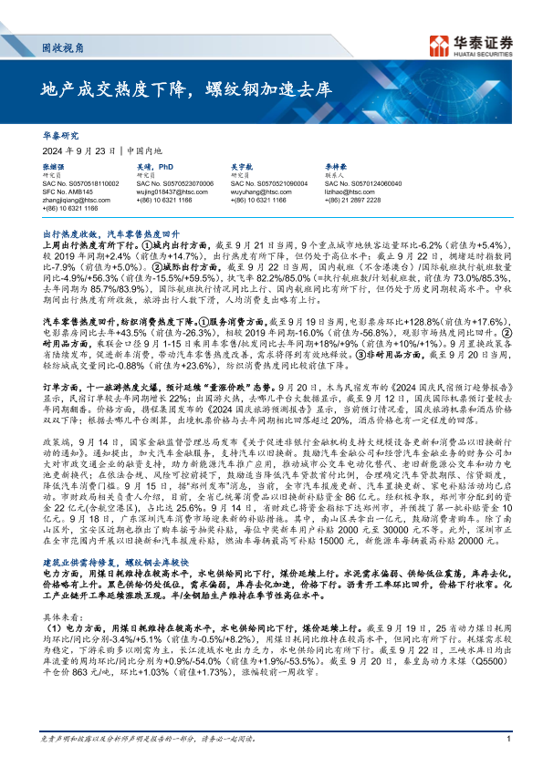 【华泰证券】【20240923】固收视角:地产成交热度下降,螺纹钢加速去库-13页