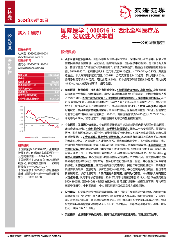 【东海证券】【20240925】国际医学(000516)公司深度报告:西北全科医疗龙头,发展进入快车道-31页