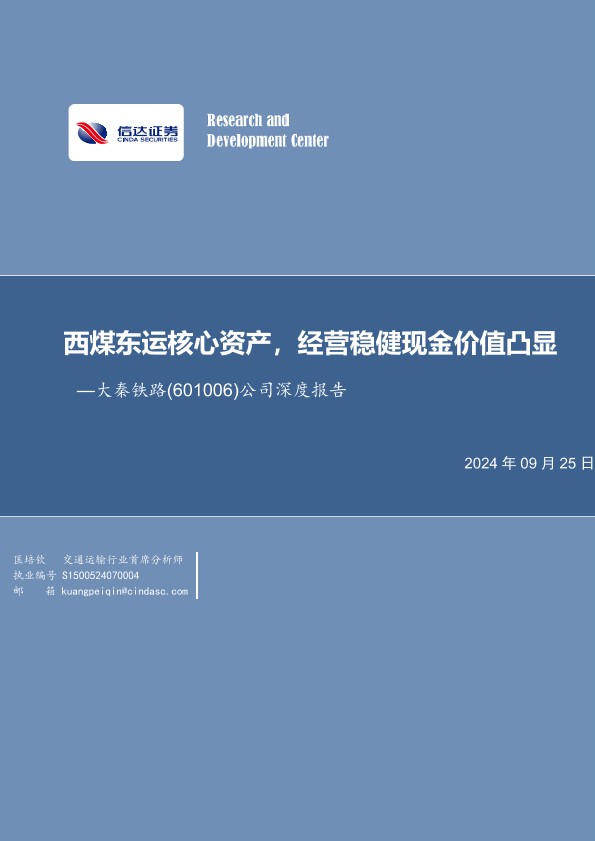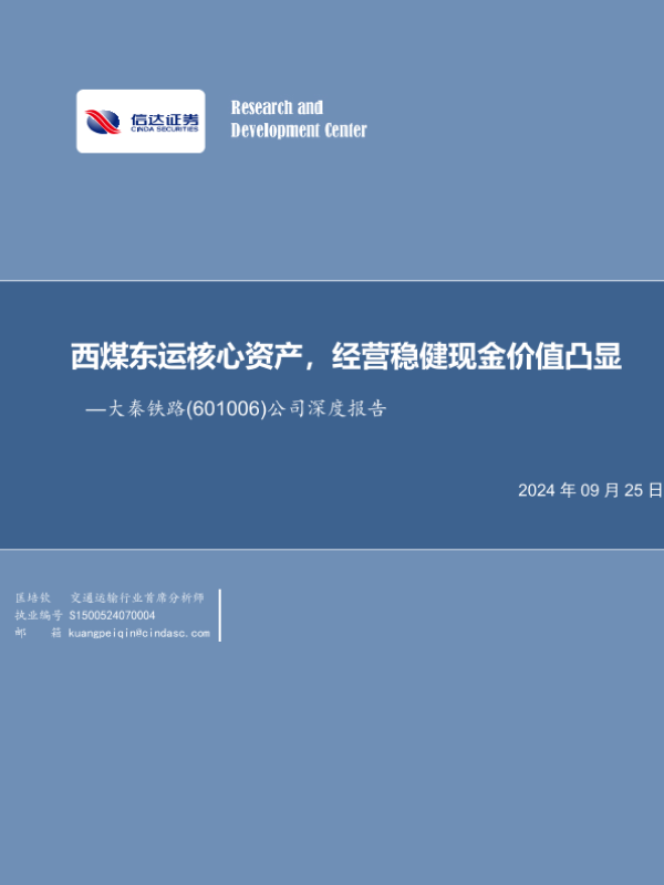 【信达证券】【20240925】大秦铁路(601006)公司深度报告:西煤东运核心资产,经营稳健现金价值凸显-27页