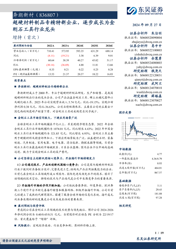 【东吴证券】【20240927】奔朗新材(836807)超硬材料制品专精特新企业,逐步成长为金刚石工具行业龙头-19页