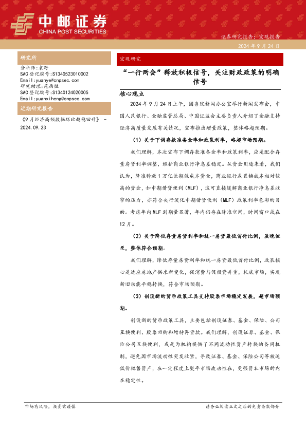 【中邮证券】【20240924】宏观研究:“一行两会”释放积极信号,关注财政政策的明确信号-13页