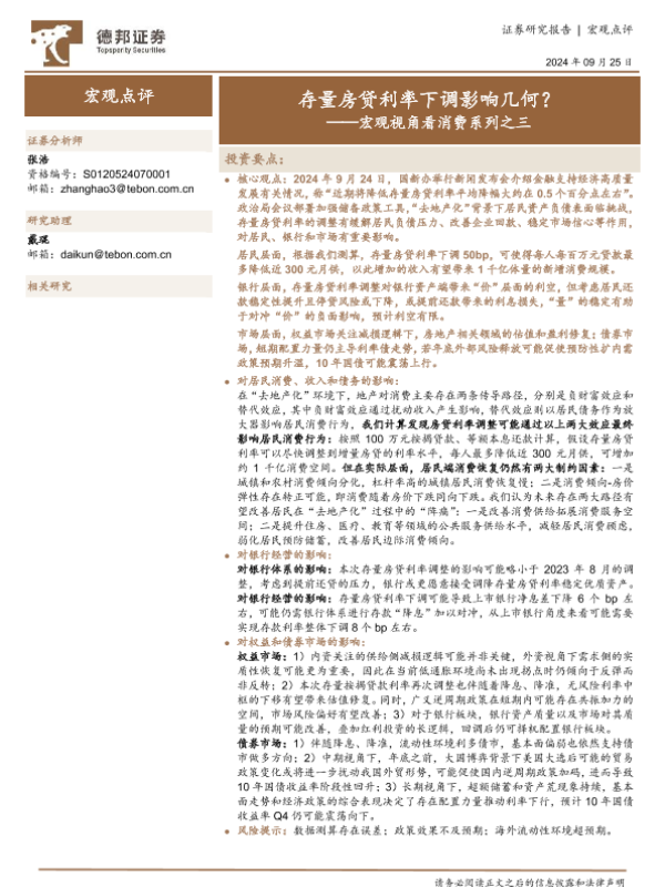 【德邦证券】【20240925】宏观视角看消费系列之三:存量房贷利率下调影响几何?-16页