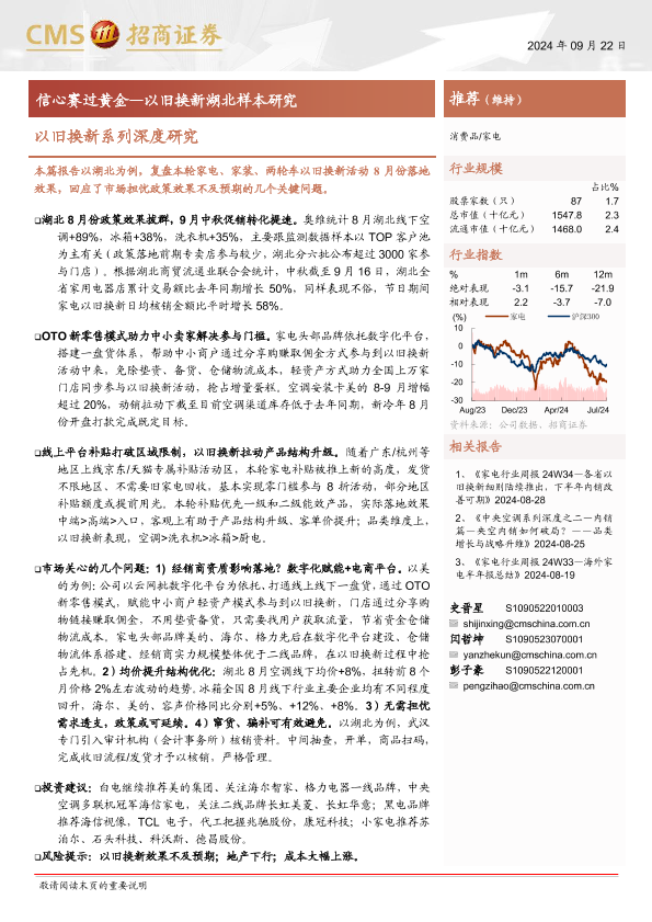【海通证券】【20240922】家电行业以旧换新系列深度研究:信心赛过黄金-以旧换新湖北样本研究-13页