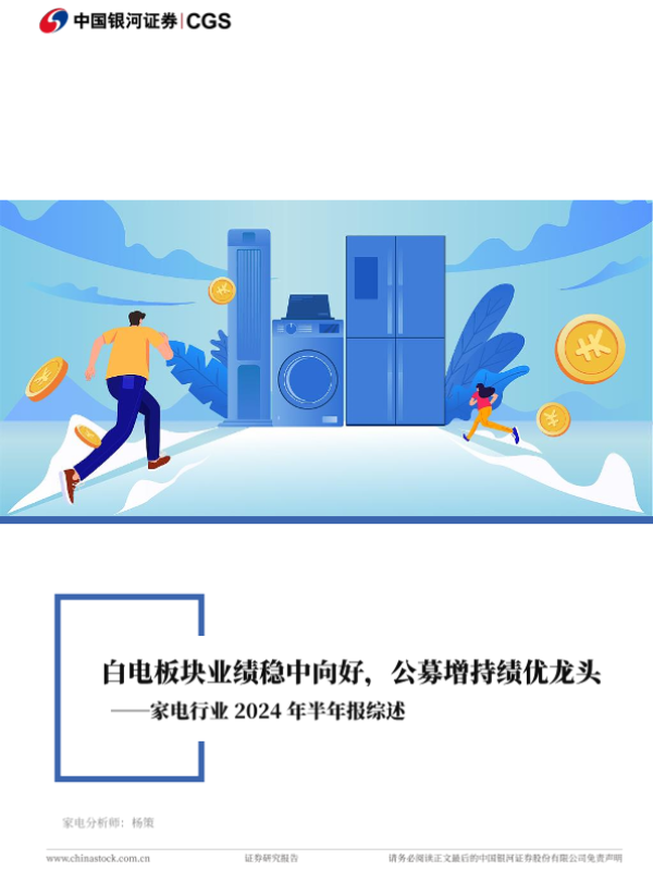 【银河证券】【20240917】家电行业2024年半年报综述:白电板块业绩稳中向好,公募增持绩优龙头-23页