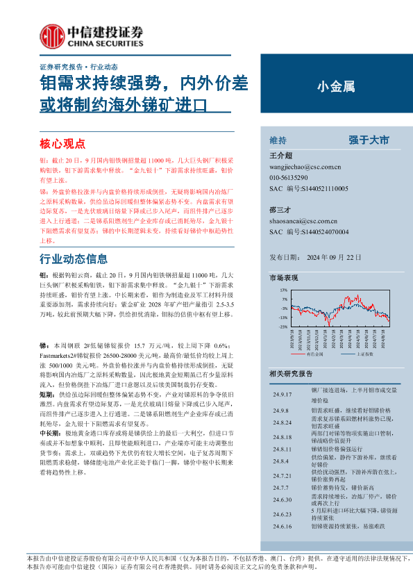 【中信建投证券】【20240922】小金属行业:钼需求持续强势,内外价差或将制约海外锑矿进口-8页