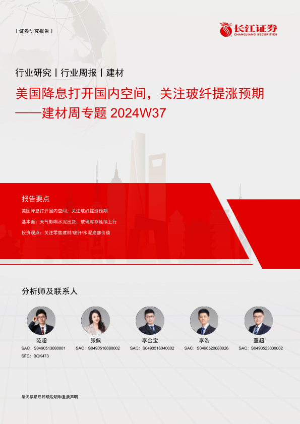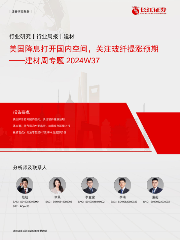 【长江证券】【20240923】建材行业周专题2024W37:美国降息打开国内空间,关注玻纤提涨预期-16页