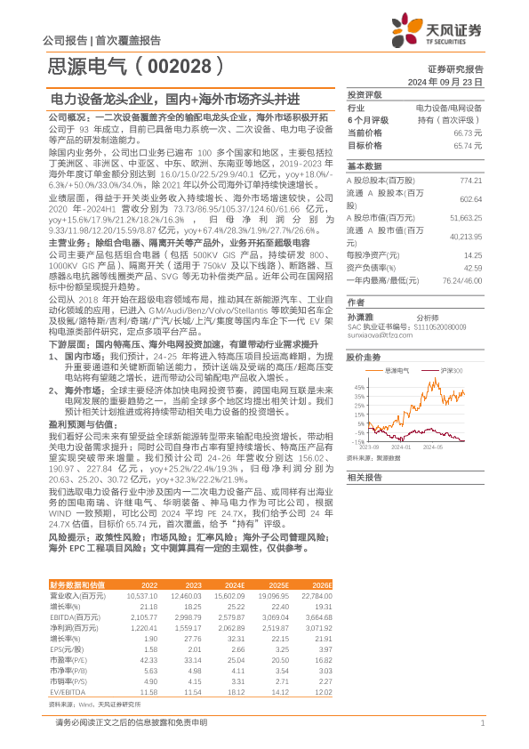 【天风证券】【20240923】思源电气(002028)电力设备龙头企业,国内+海外市场齐头并进-21页