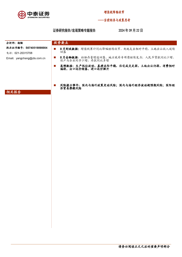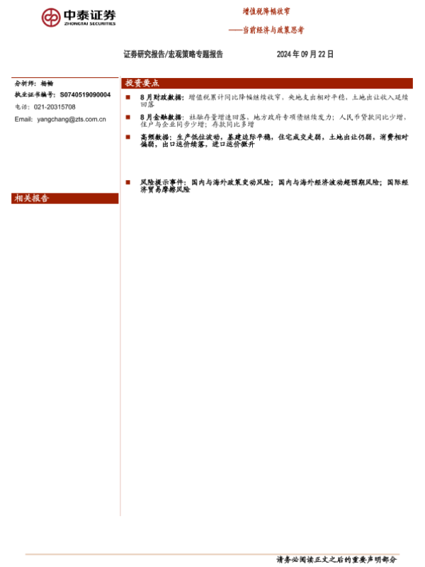 【中泰证券】【20240922】当前经济与政策思考:增值税降幅收窄-20页