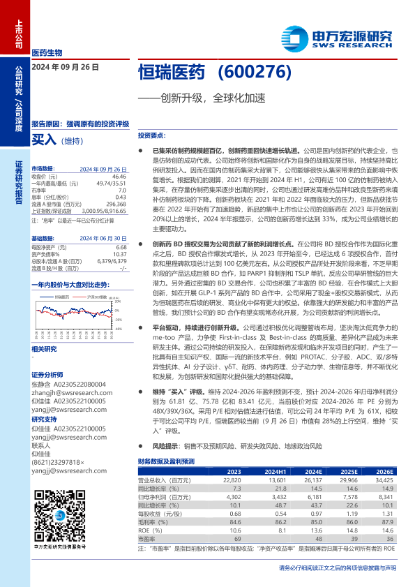 【申万宏源】【20240926】恒瑞医药(600276)创新升级,全球化加速-32页