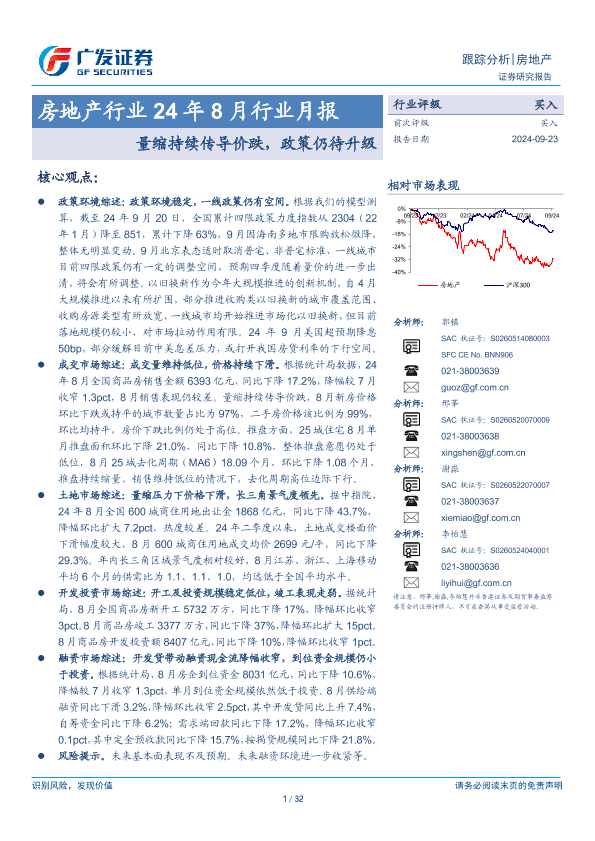 【广发证券】【20240923】房地产行业24年8月行业月报:量缩持续传导价跌,政策仍待升级-32页