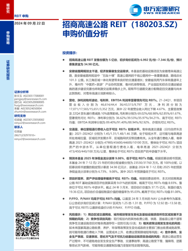 【申万宏源】【20240922】招商高速公路REIT(180203.SZ)申购价值分析-18页