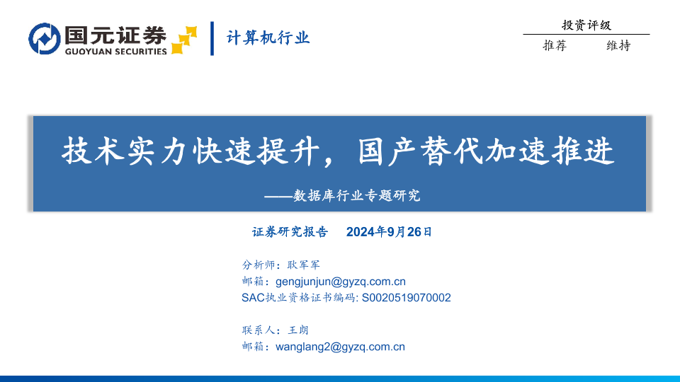 【国元证券】【20240926】数据库行业专题研究:技术实力快速提升,国产替代加速推进-41页