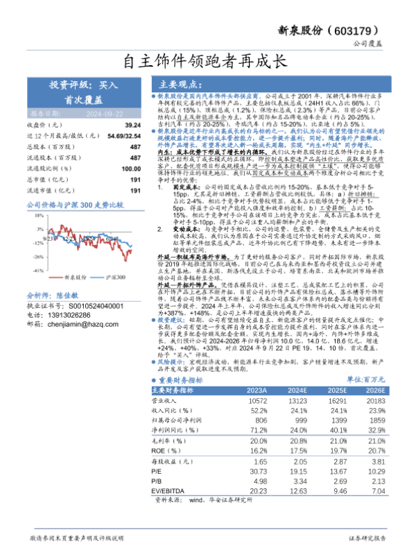 【华安证券】【20240922】新泉股份(603179)自主饰件领跑者再成长-20页