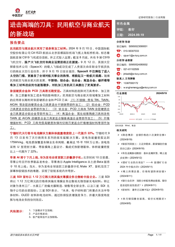 【五矿证券】【20240919】有色金属行业进击高端的刀具:民用航空与商业航天的新战场-11页