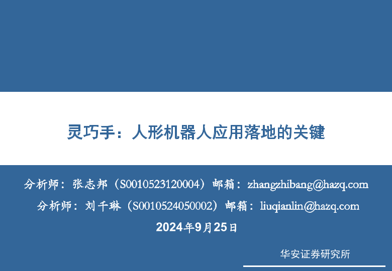 【华安证券】【20240925】机器人行业灵巧手:人形机器人应用落地的关键-46页