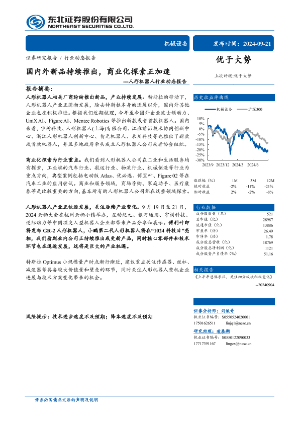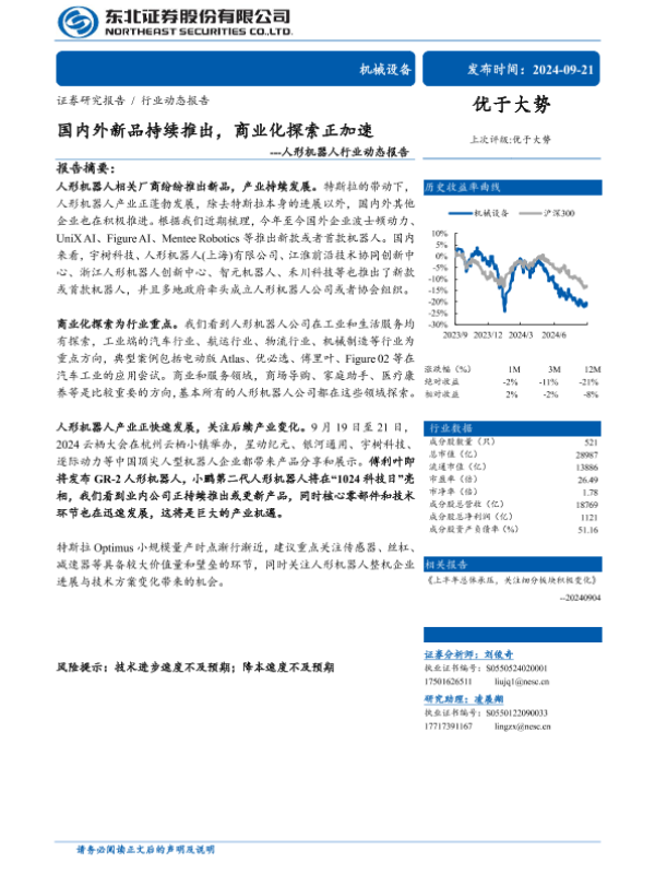 【东北证券】【20240921】机械设备行业人形机器人行业动态报告:国内外新品持续推出,商业化探索正加速-15页