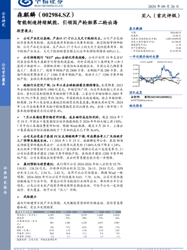 【华福证券】【20240926】森麒麟(002984)智能制造持续赋能,引领国产轮胎第二轮出海-26页