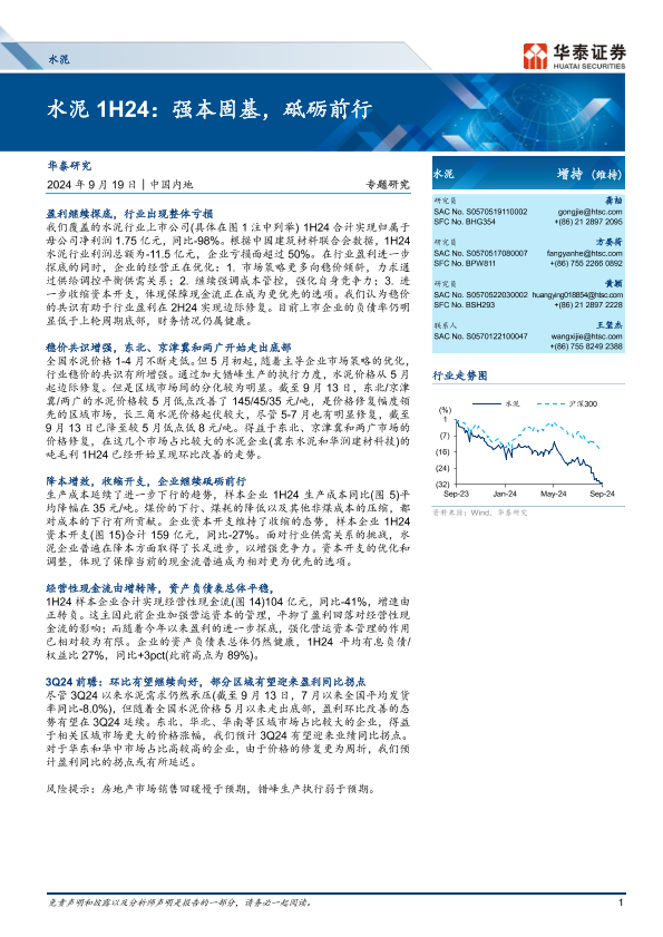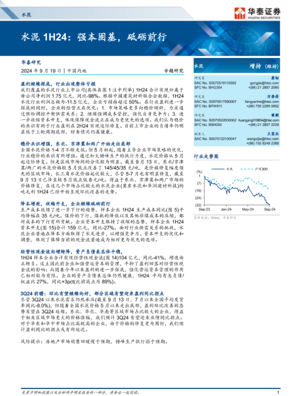 【华泰证券】【20240919】水泥行业1H24:强本固基,砥砺前行-10页
