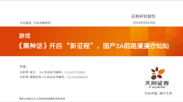 【天风证券】【20240925】游戏行业深度研究:《黑神话》开启“新征程”,国产3A前路漫漫亦灿灿-38页