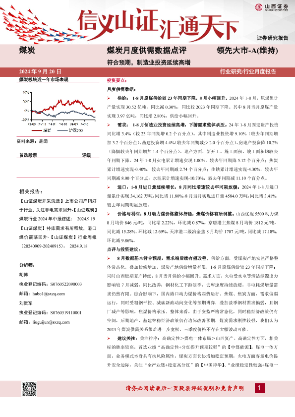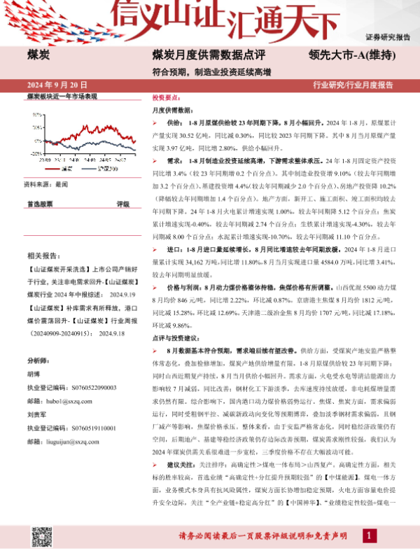 【山西证券】【20240920】煤炭行业月度供需数据点评:符合预期,制造业投资延续高增-10页