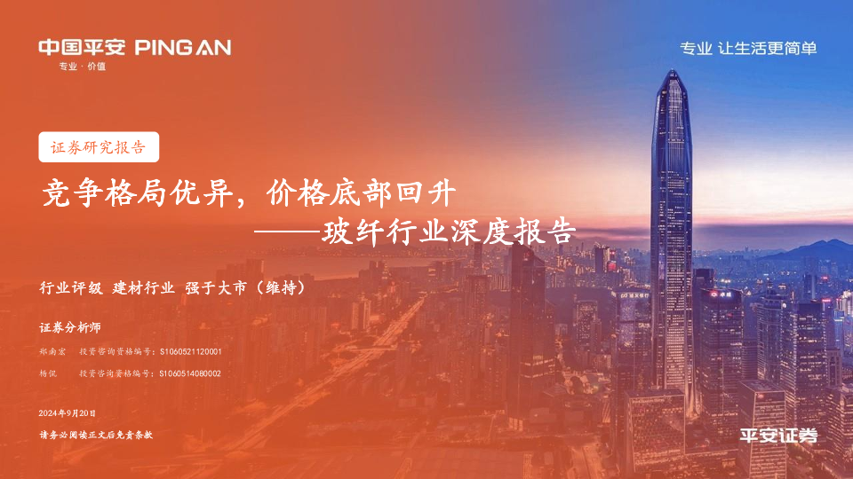 【平安证券】【20240920】玻纤行业深度报告:竞争格局优异,价格底部回升-30页