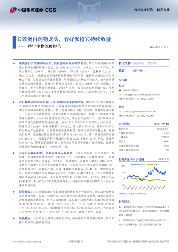 【银河证券】【20240919】特宝生物(688278)深度报告:长效蛋白药物龙头,看好派格宾持续放量-48页