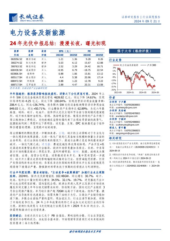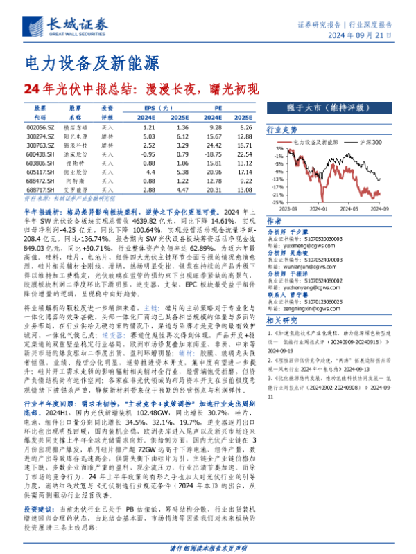 【长城证券】【20240921】电力设备及新能源行业24年光伏中报总结:漫漫长夜,曙光初现-32页