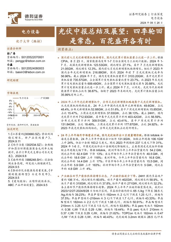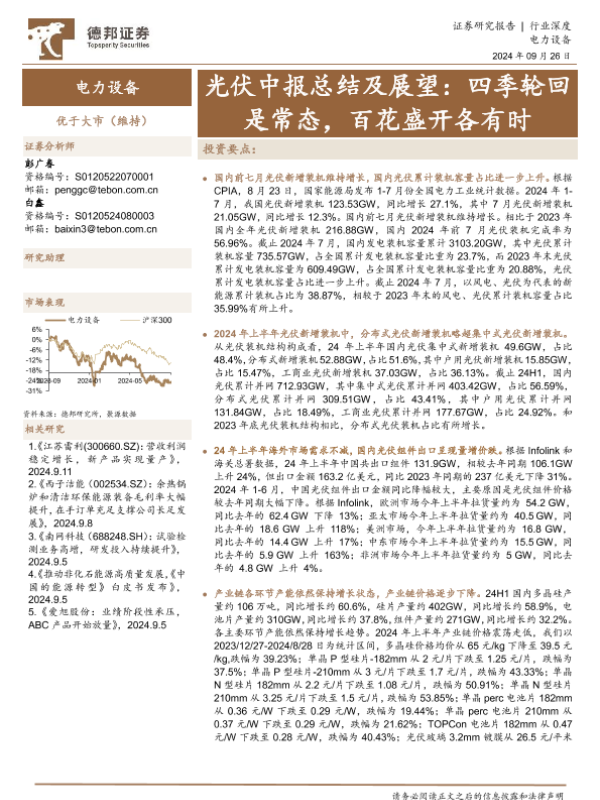 【德邦证券】【20240926】电力设备行业光伏中报总结及展望:四季轮回是常态,百花盛开各有时-22页