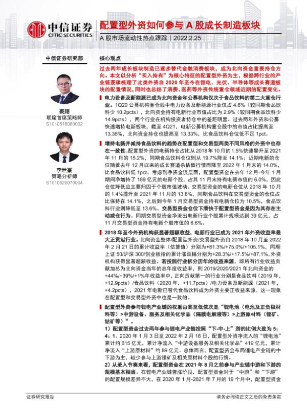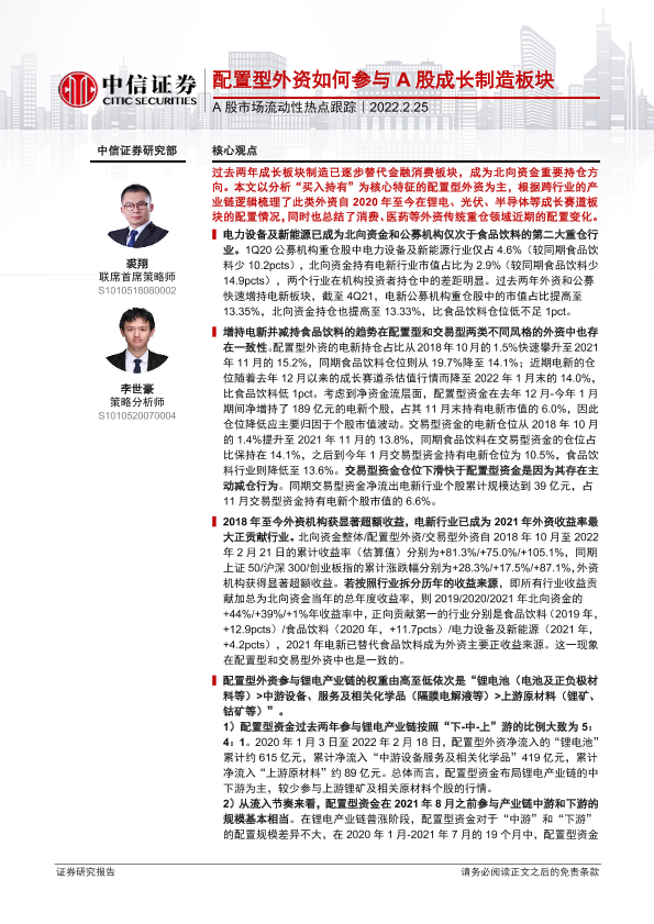 【中信证券】【20220225】A股市场流动性热点跟踪:配置型外资如何参与A股成长制造板块-15页