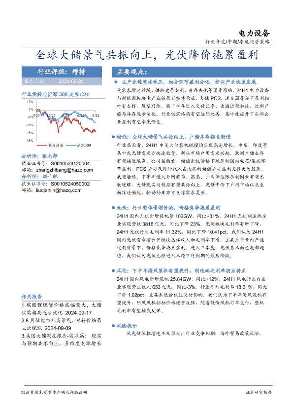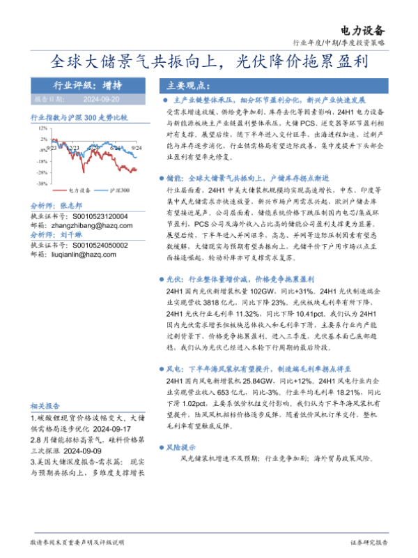 【华安证券】【20240920】电力设备行业季度投资策略:全球大储景气共振向上,光伏降价拖累盈利-21页
