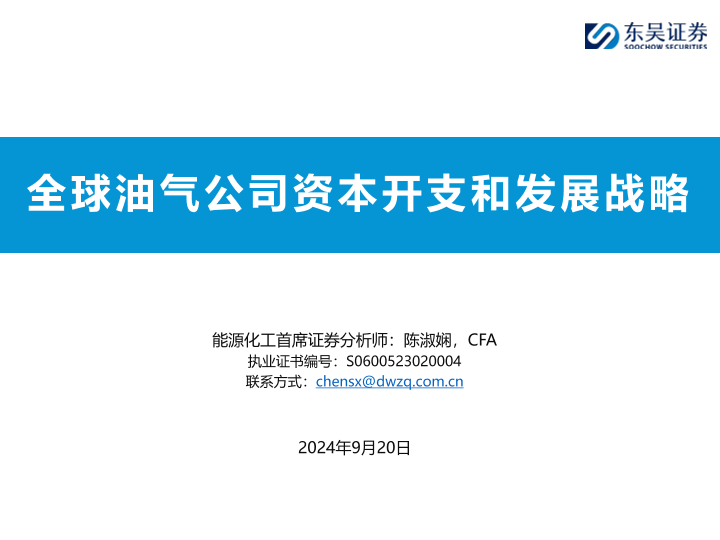 【东吴证券】【20240920】石油化工行业:全球油气公司资本开支和发展战略-118页