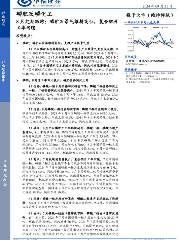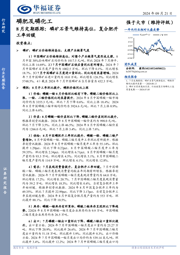 【华福证券】【20240921】磷肥及磷化工行业8月定期跟踪:磷矿石景气维持高位,复合肥开工率回暖-13页