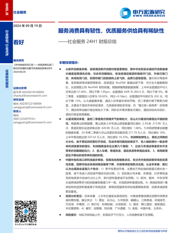 【申万宏源】【20240919】社会服务行业24H1财报总结:服务消费具有韧性,优质服务供给具有稀缺性-16页