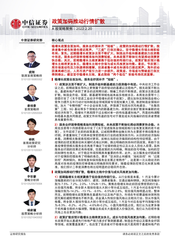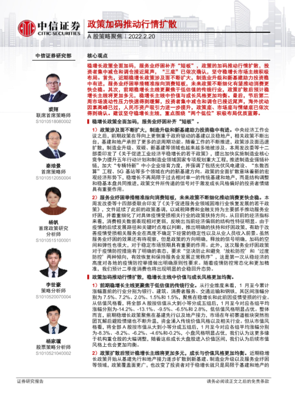 【中信证券】【20220220】A股策略聚焦:政策加码推动行情扩散-17页