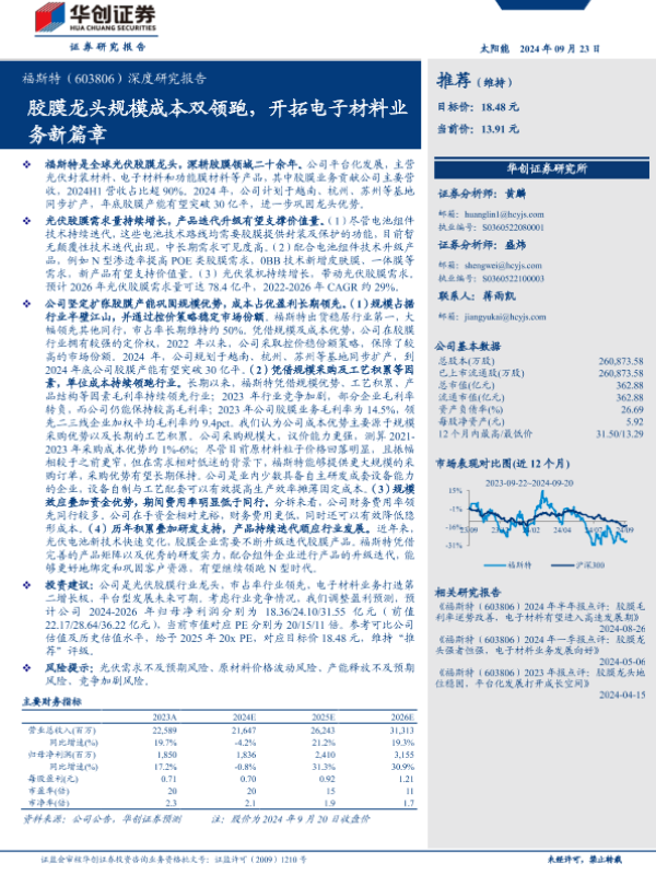 【华创证券】【20240923】福斯特(603806)深度研究报告:胶膜龙头规模成本双领跑,开拓电子材料业务新篇章-39页