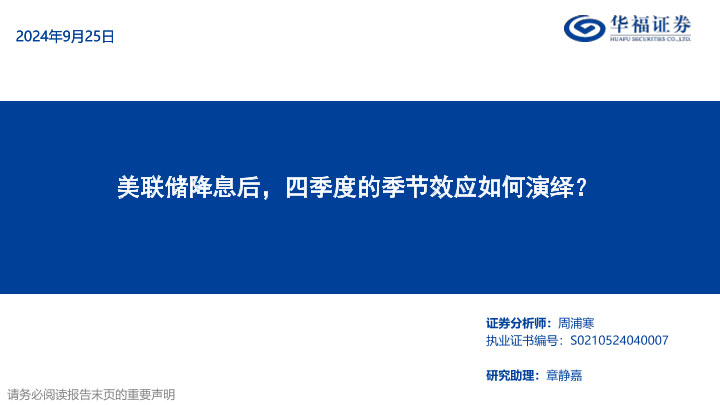 【华福证券】【20240925】策略专题报告:美联储降息后,四季度的季节效应如何演绎?-32页