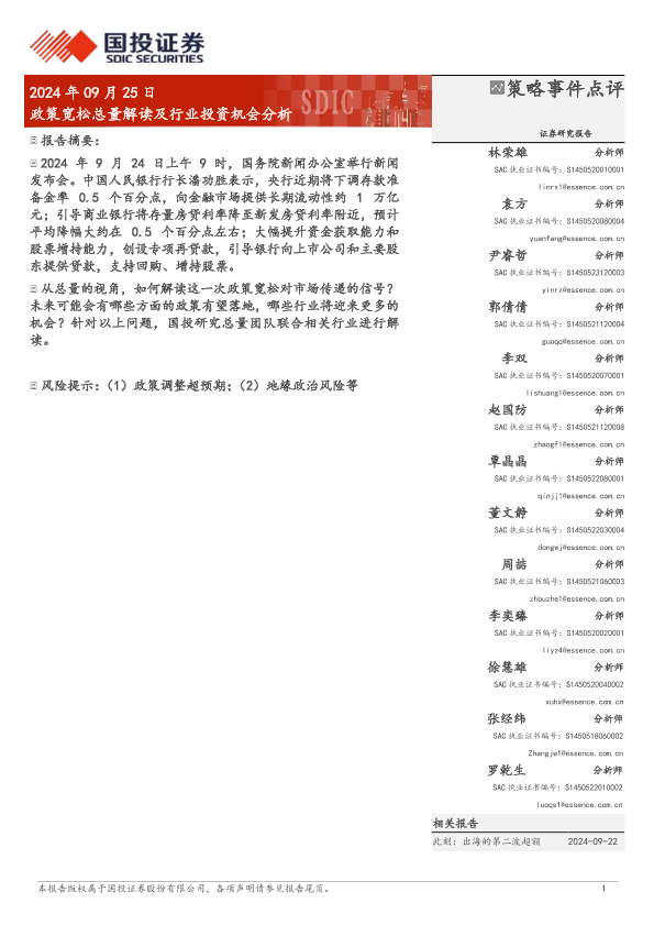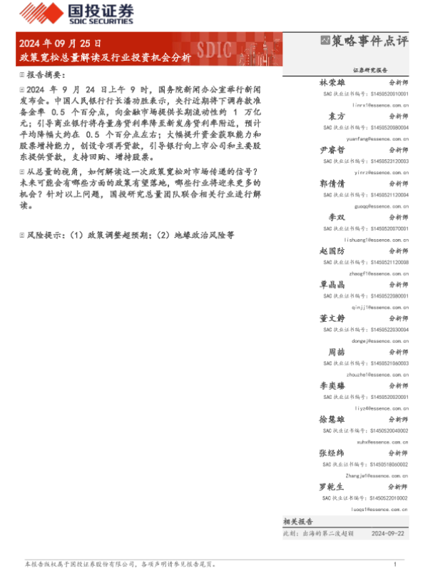 【国投证券】【20240925】策略事件点评:政策宽松总量解读及行业投资机会分析-11页