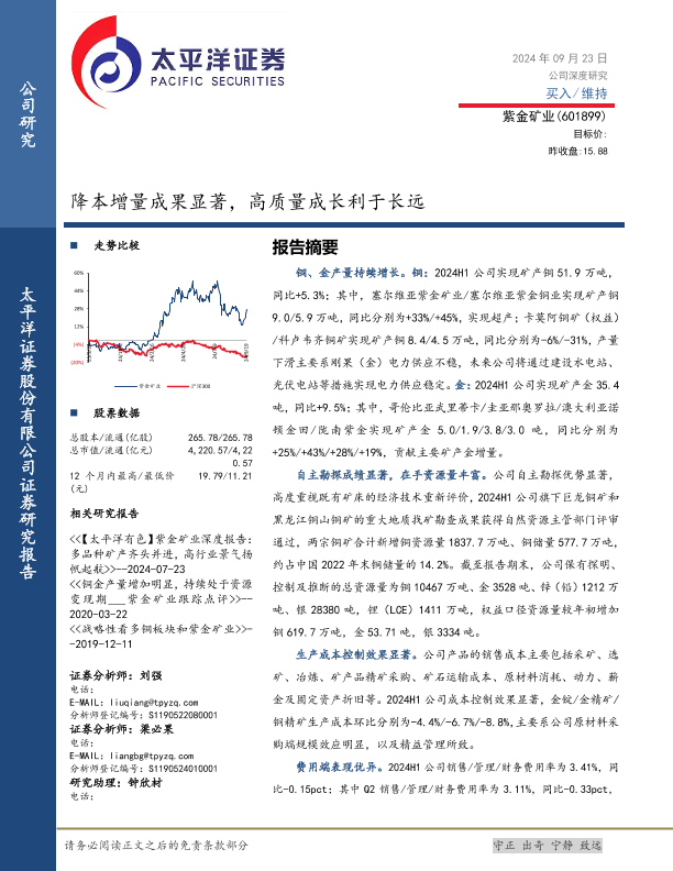 【太平洋证券】【20240923】紫金矿业(601899)降本增量成果显著,高质量成长利于长远-27页