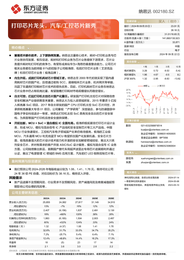 【东方证券】【20240922】纳思达(002180)打印芯片龙头,汽车/工控芯片新秀-26页