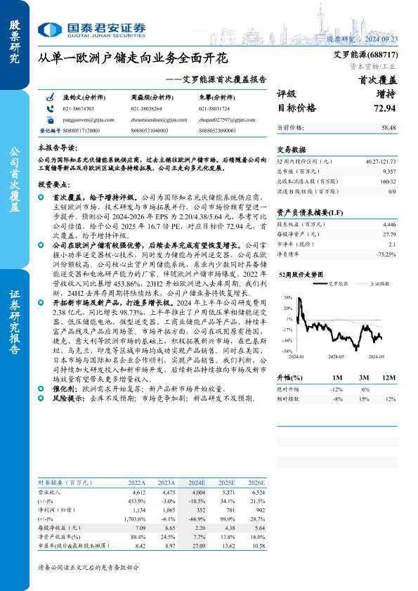 【国泰君安证券】【20240923】艾罗能源(688717)首次覆盖报告:从单一欧洲户储走向业务全面开花-28页