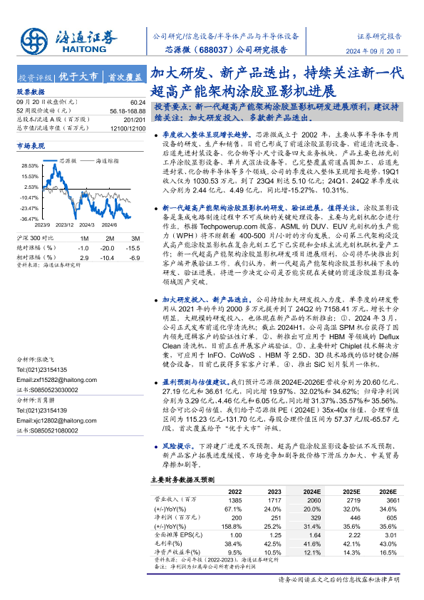 【海通证券】【20240920】芯源微(688037)公司研究报告:加大研发、新产品迭出,持续关注新一代超高产能架构涂胶显影机进展-11页