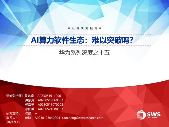 【申万宏源】【20240919】计算机行业华为系列深度之十五-AI算力软件生态:难以突破吗?-31页